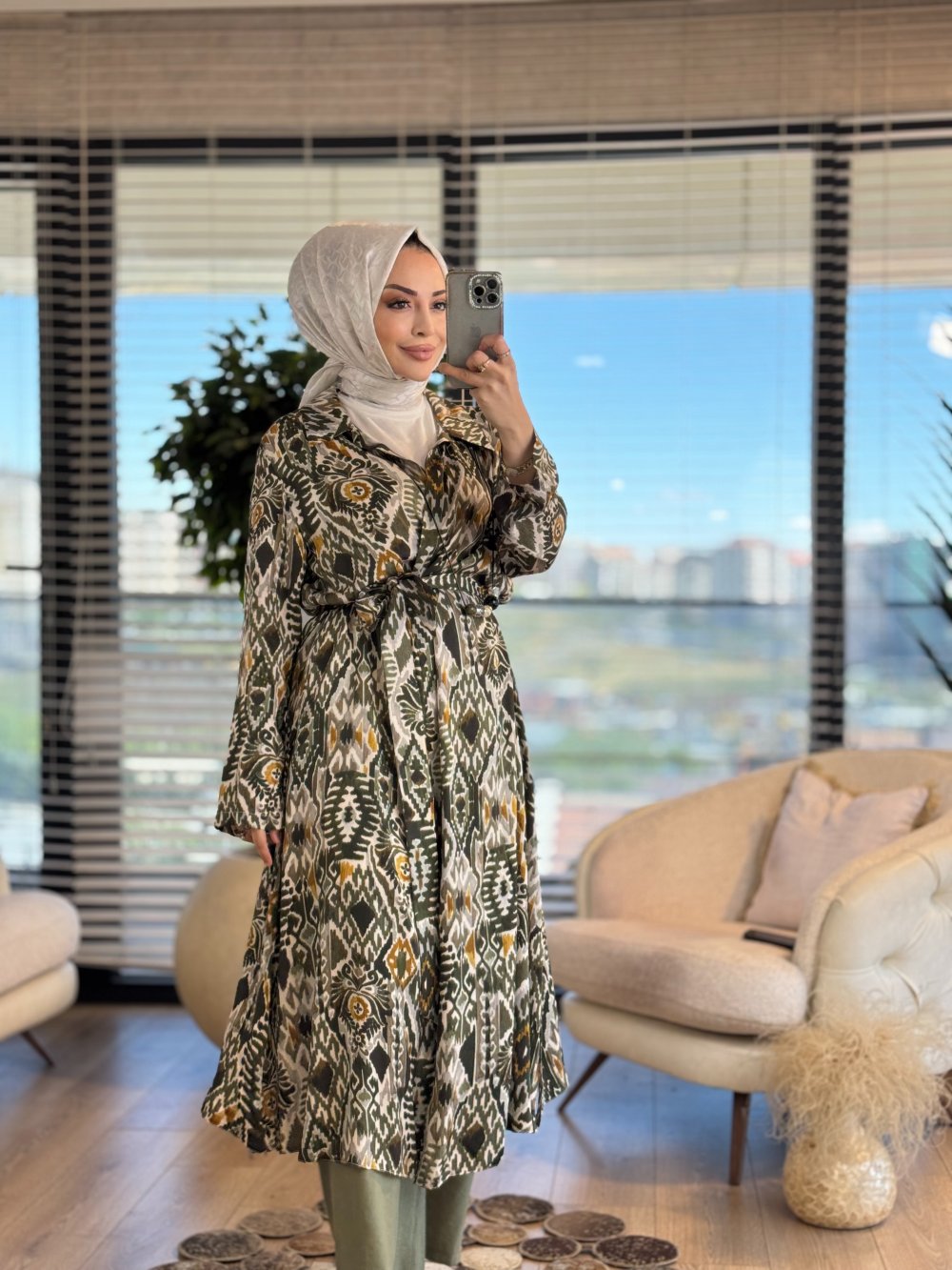 02-2451 Otantik Desenli Kap Pantolon Takım Haki