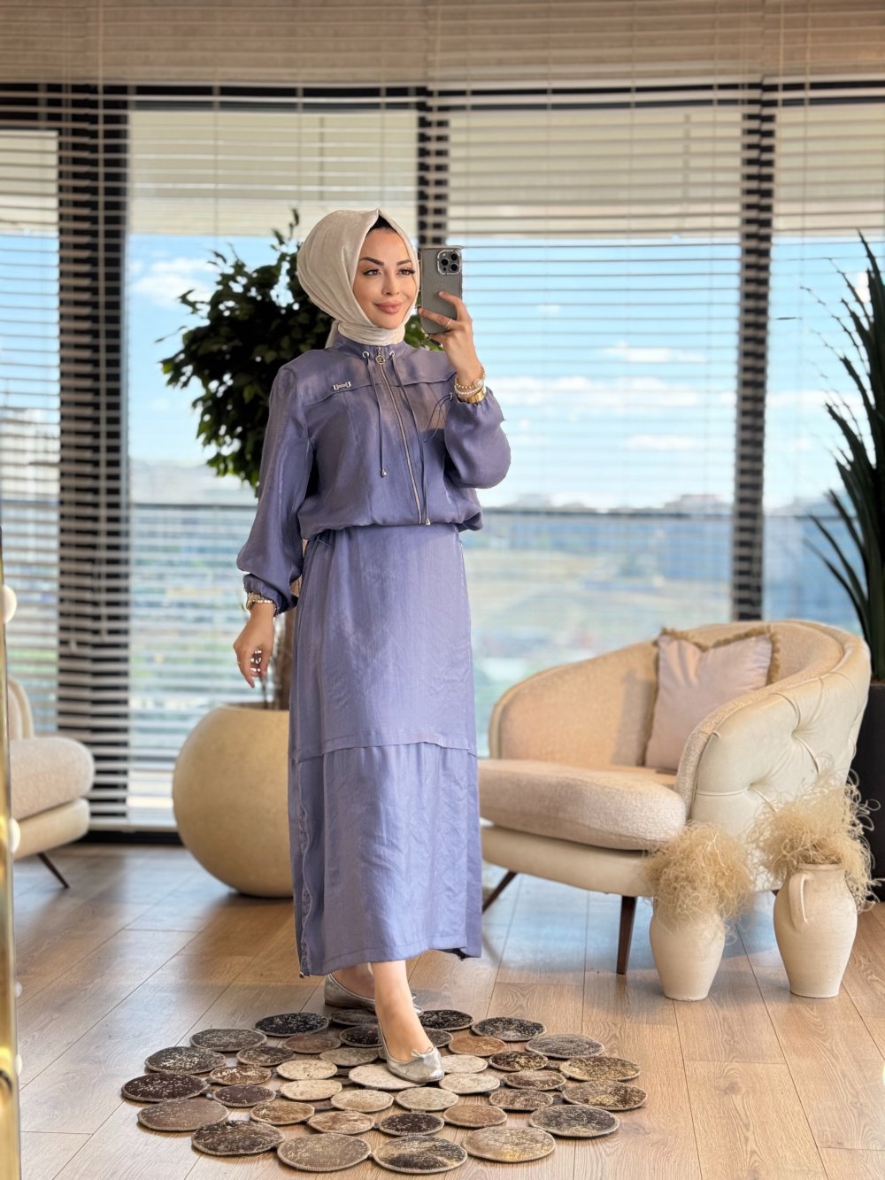 02-2530 Robası Şerit Parça Detaylı Fermuarlı Takım İndigo