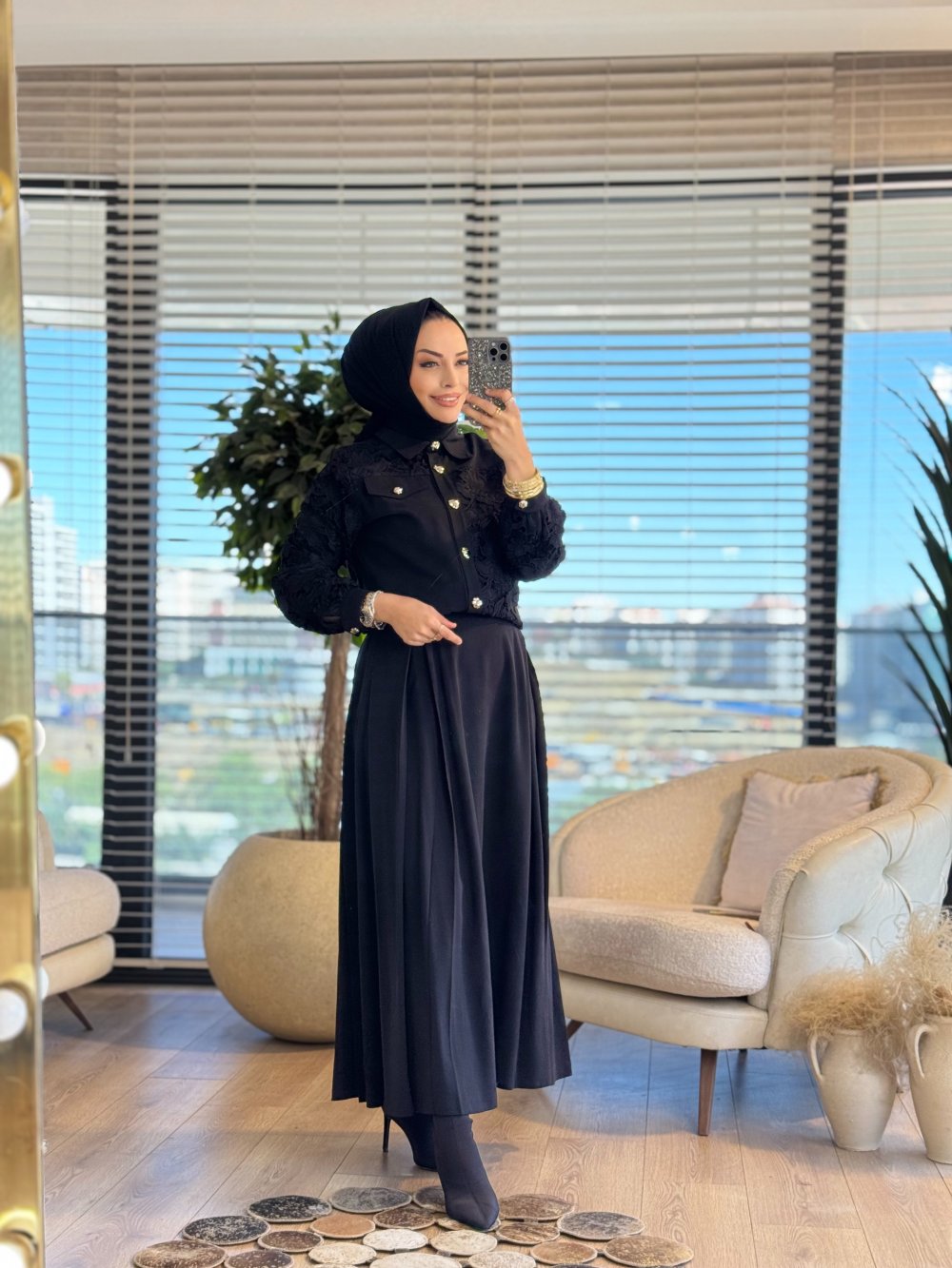 02-2663 Kol Ve Sağ Taraf Dantelli Takım Siyah