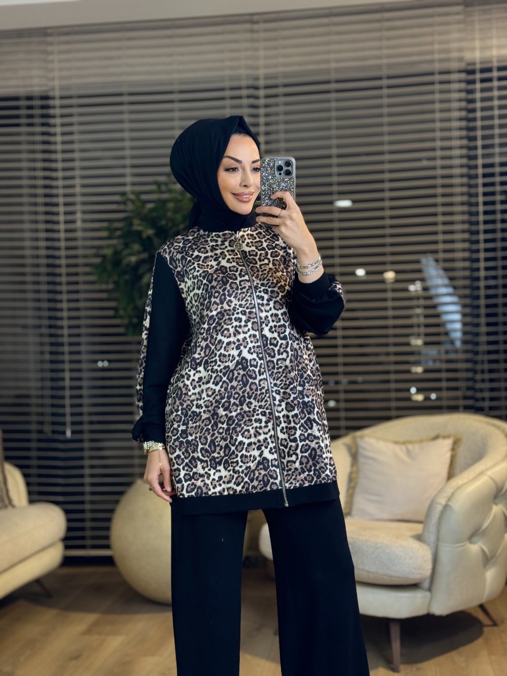 02-2729 Üst Leopar Üstü Taş Baskılı Takım Leopar