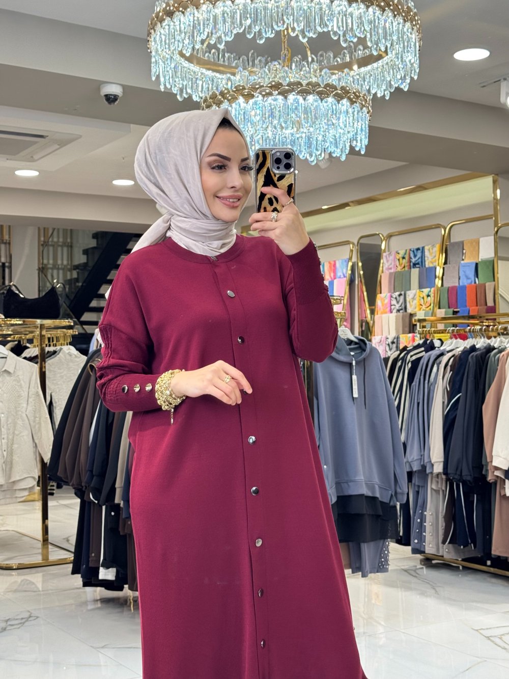 048 Eteği Volanlı Çıtçıtlı Uzun Hırka Bordo