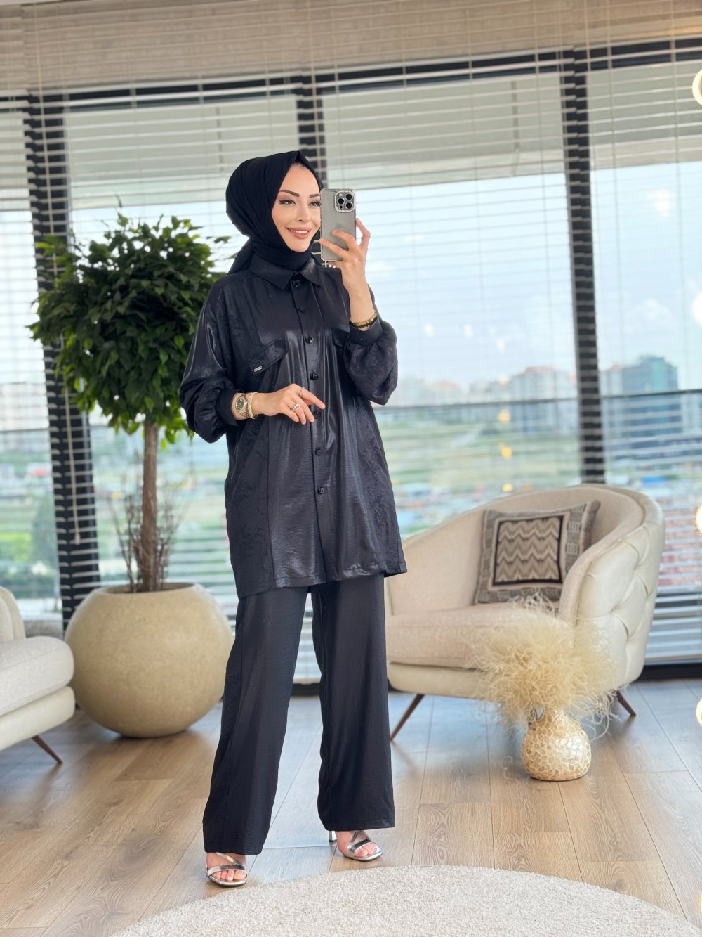 100248 Garnili Laklı Ayrobin İkili Takım Siyah