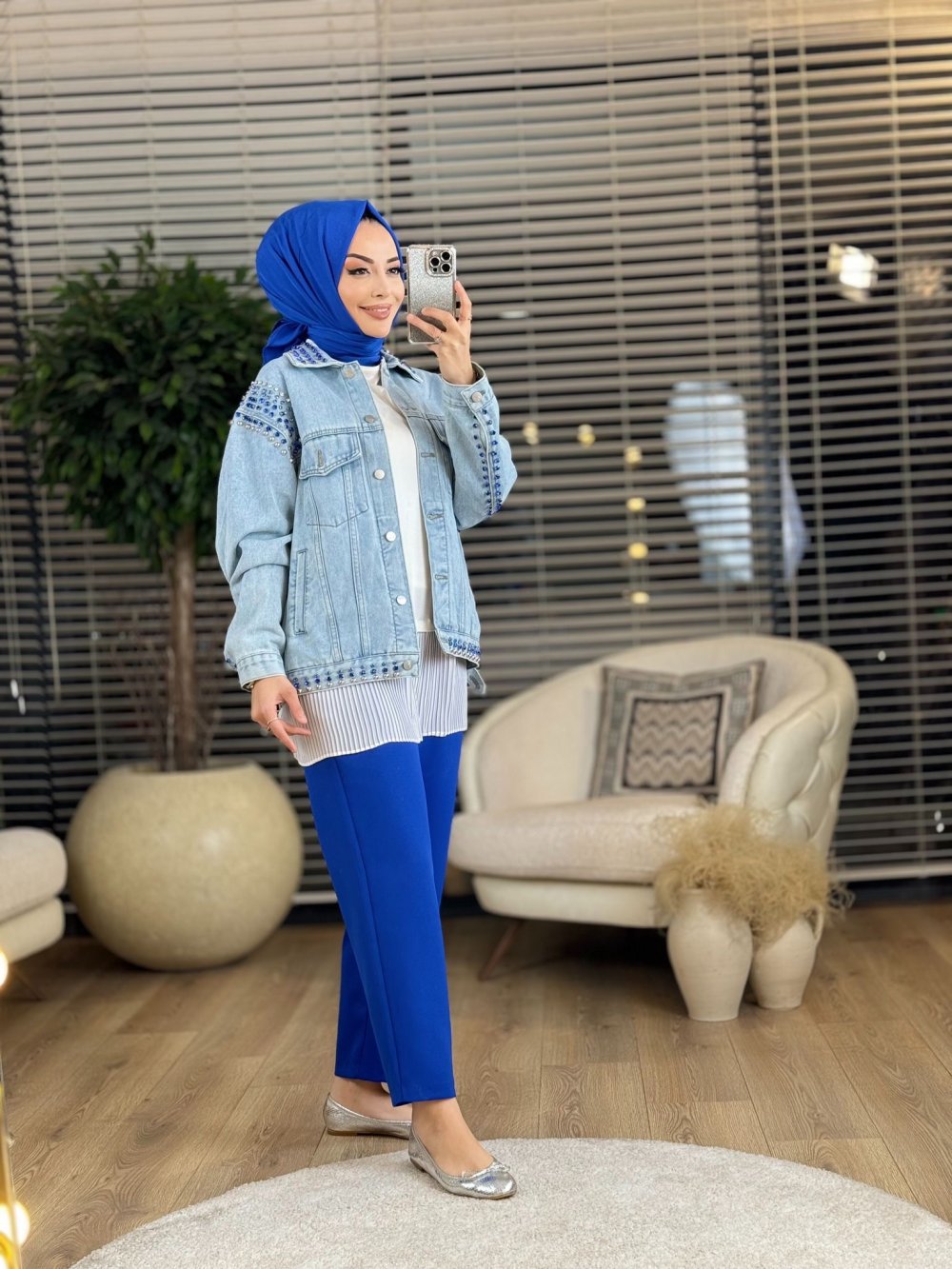 1074 Monica Taş Detaylı Kot Ceket Mavi