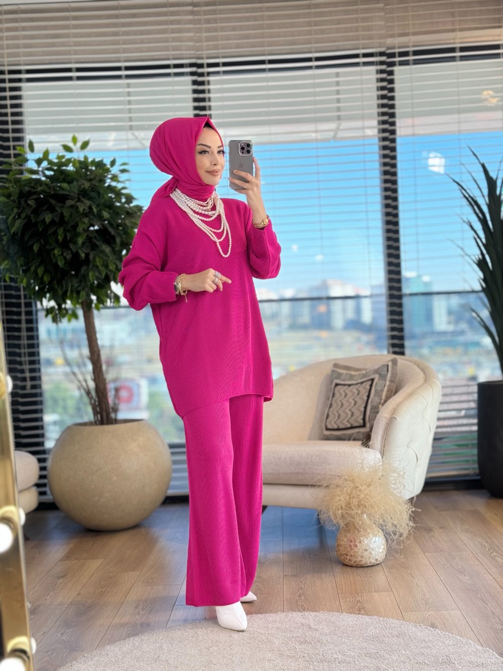 14053 Selanik Triko Pantolon Takım Fuşya