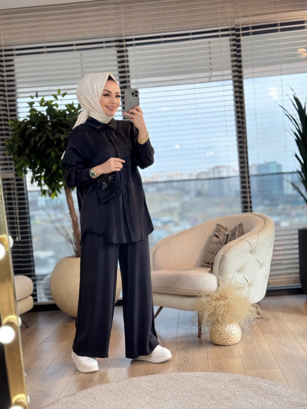 14301 Cep Üstü Boncuk İşli Takım Siyah