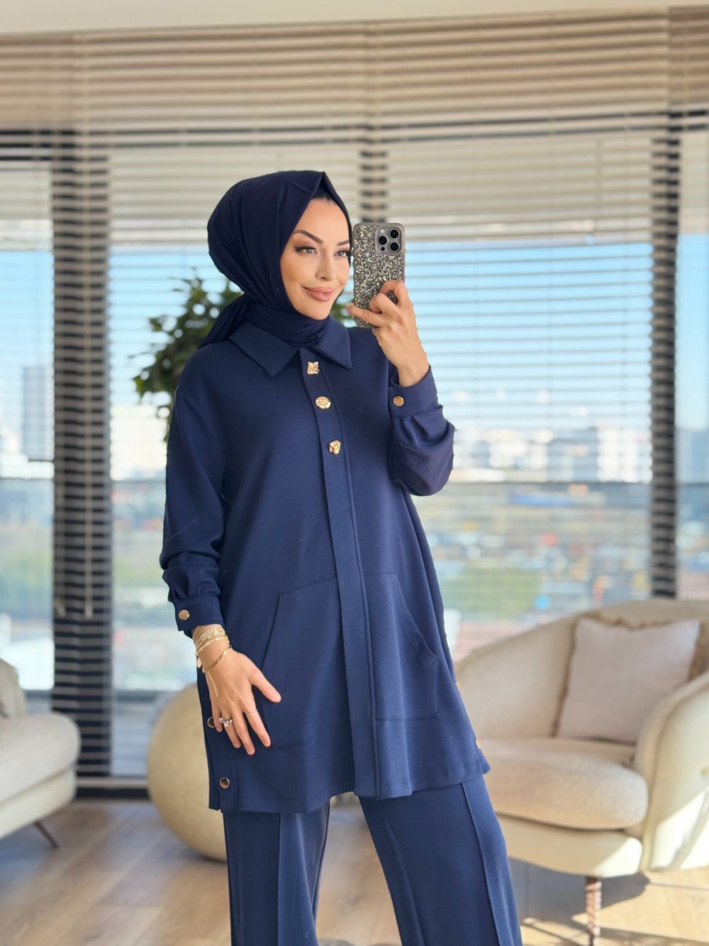 14429 Ön Fermuarlı Patı Üç Metalli Takım Lacivert