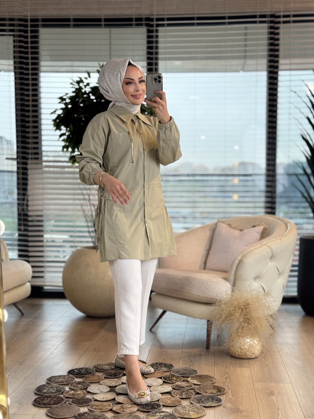 2086 Yanları Bağcıklı Uzun Gömlek Haki