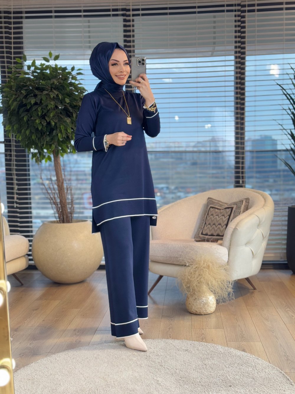 21-2006 Etek Kol Ve Paça Biye Detaylı Triko Takım Lacivert