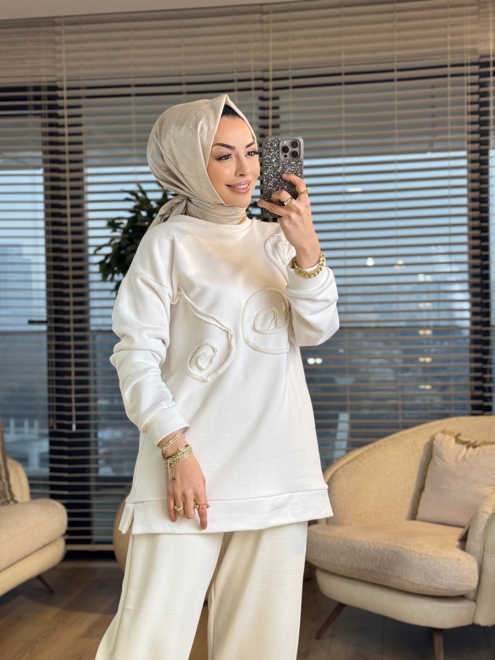 2123 Önü Kordonlu Tunik Ekru