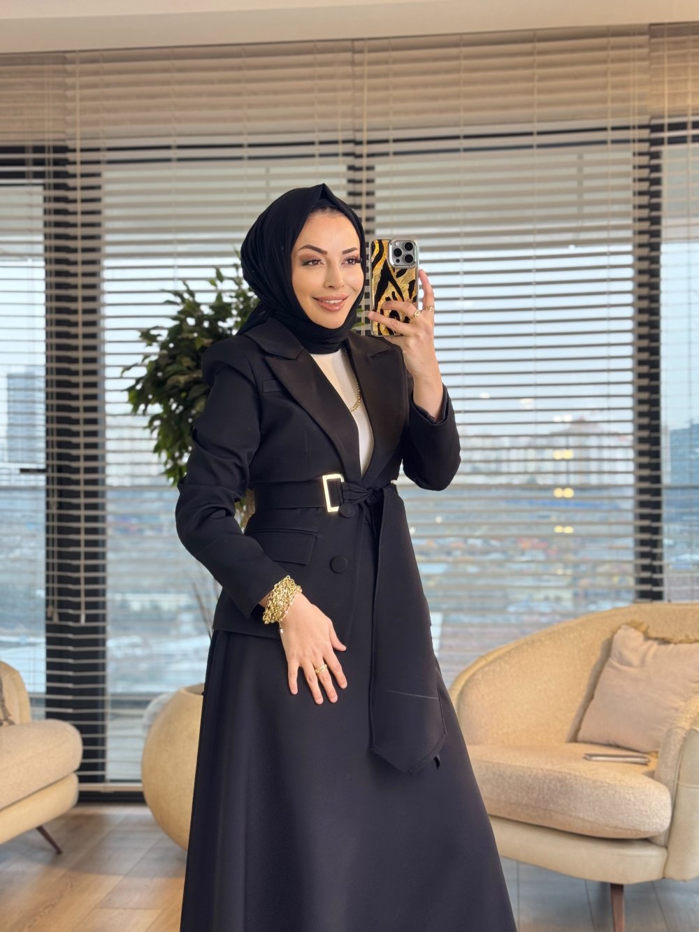 2194 İki Düğme Ceket Etekli Takım Siyah