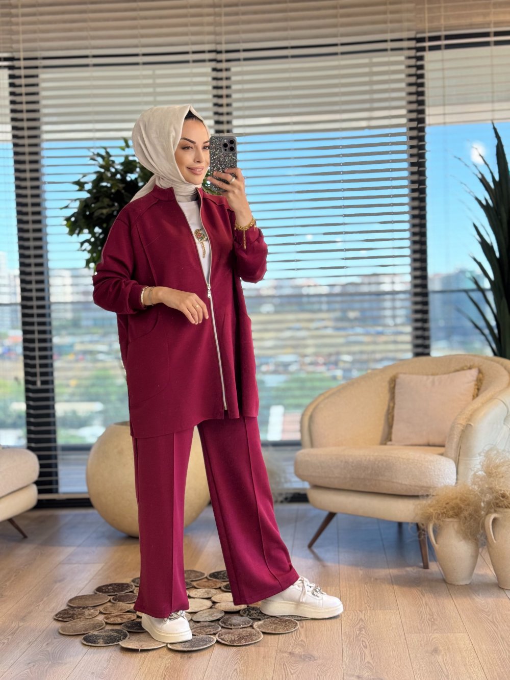 22741 Osyho Cep Dikiş Detaylı Fermuarlı Takım Bordo