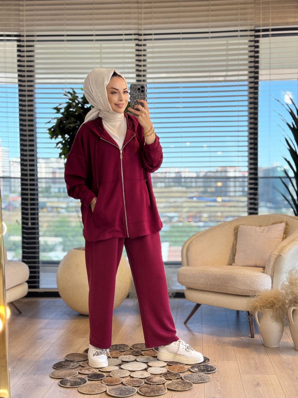 22742 Osyho Fermuarlı Kapşonlu Takım Bordo