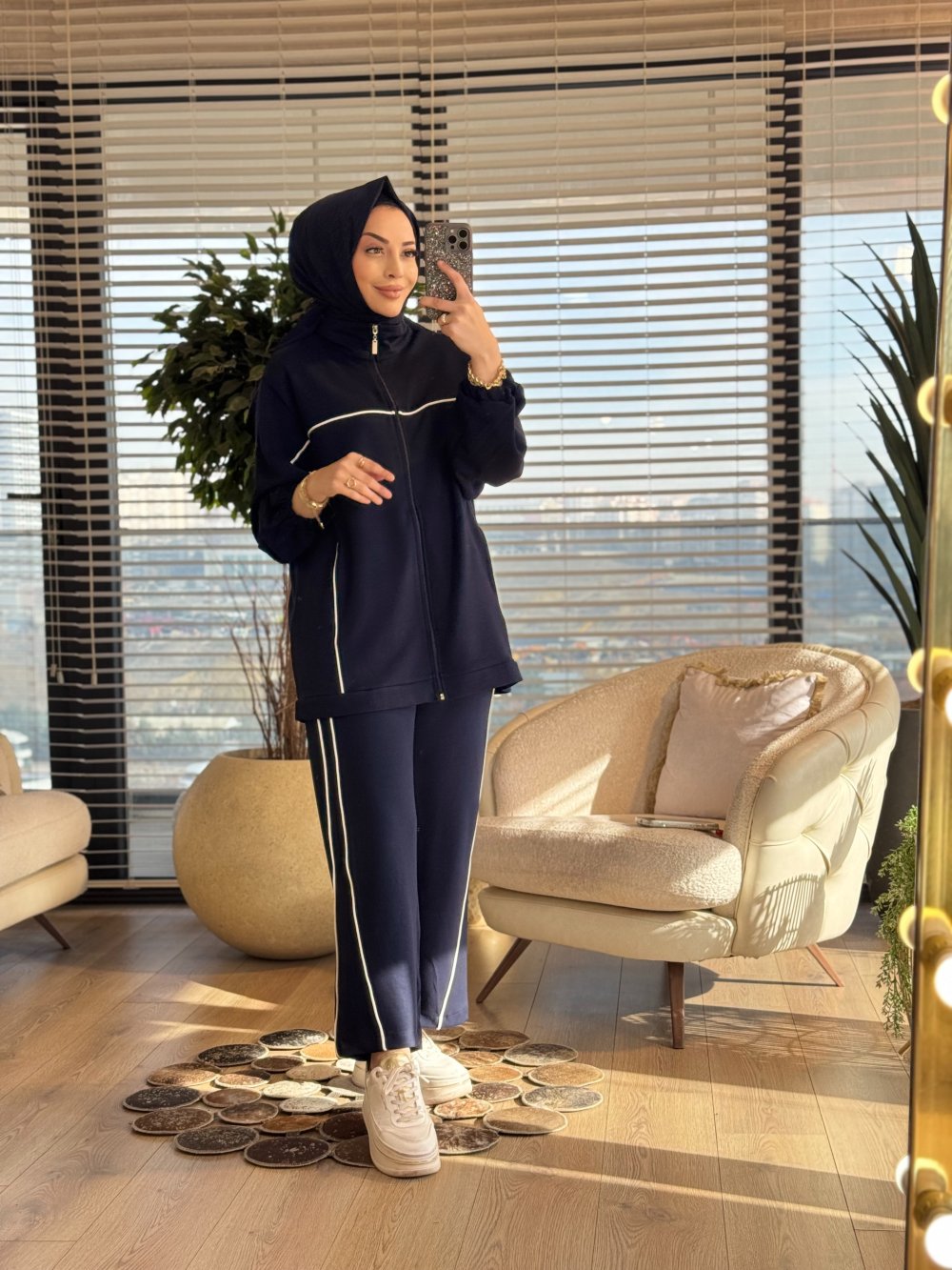 22755 Ön Kol Ve Pantolon Yanı Biye Detaylı Takım Lacivert