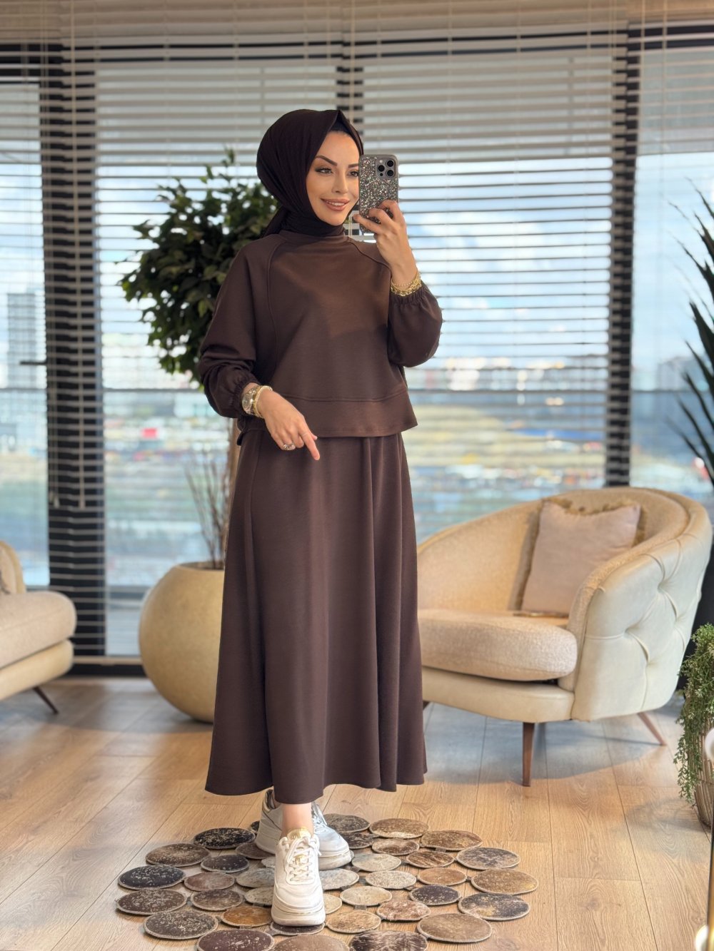 22779 Etek Ucu Parçalı Yarasa Kol Takım Kahve