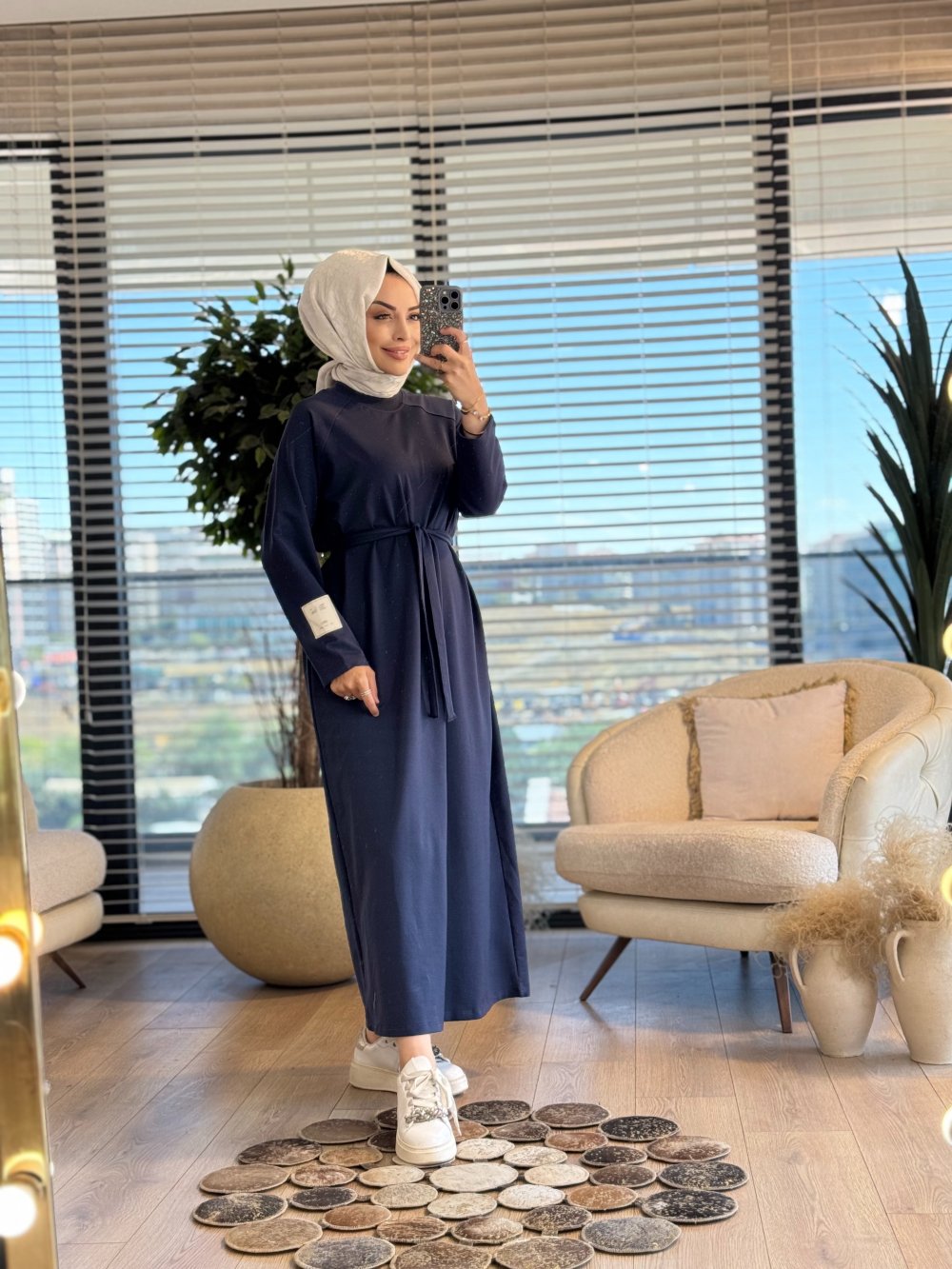 2400 Kolu Etiket Detaylı Elbise Antrasit
