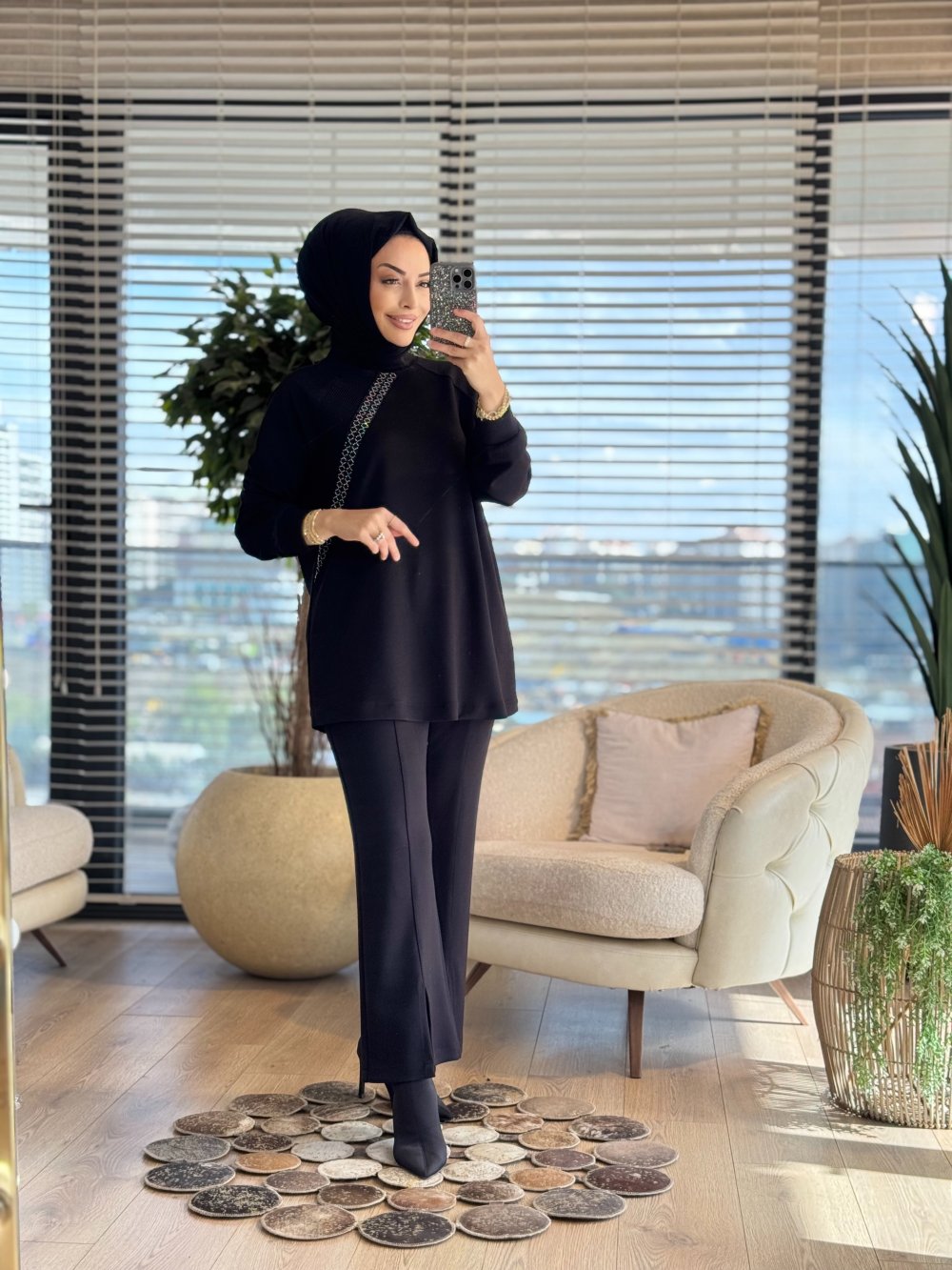 2425 Ön File Ve Taş Detaylı Takım Siyah