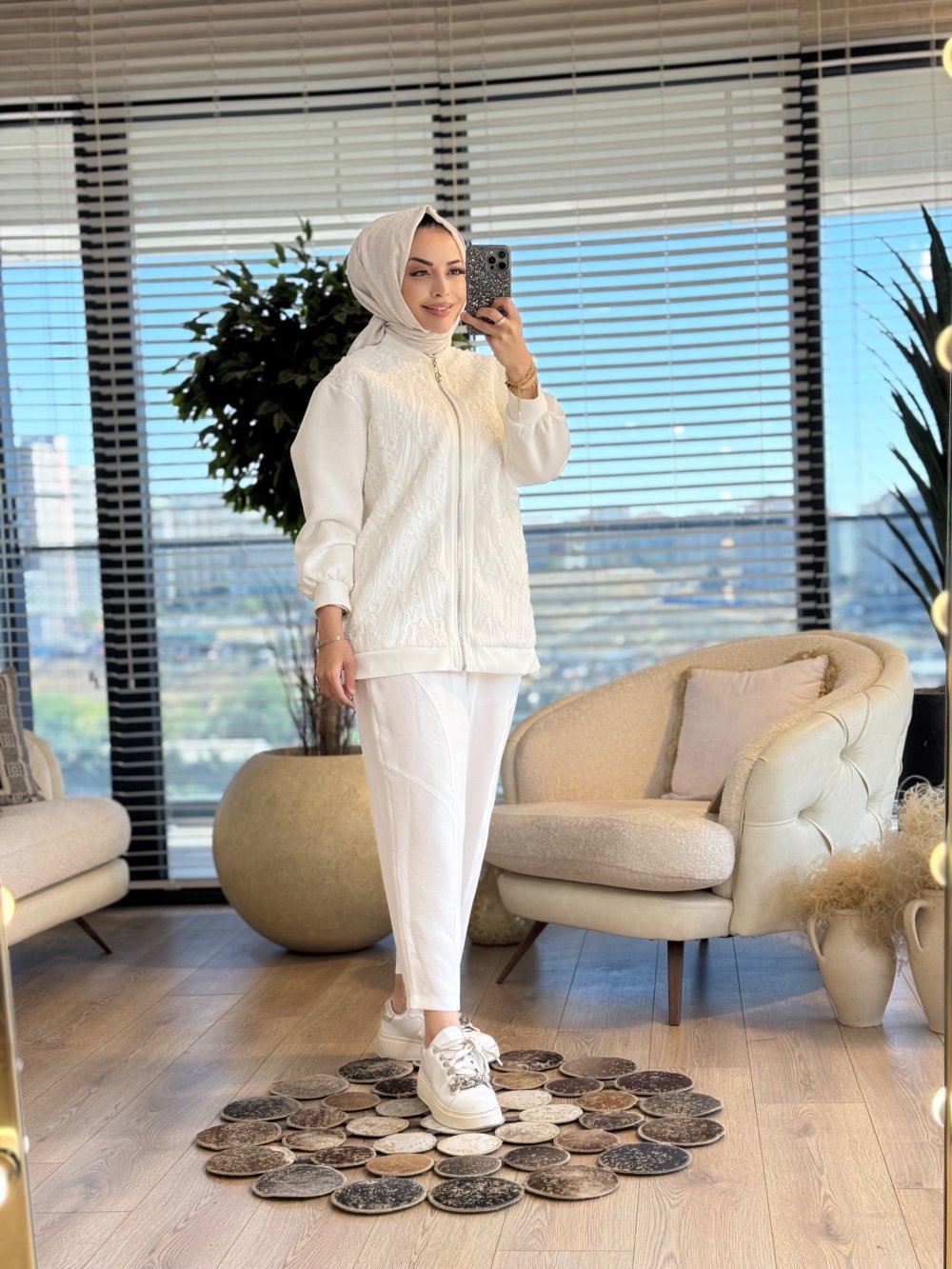 24337 Fermuarlı Önü Kordonlu Hırka Ekru