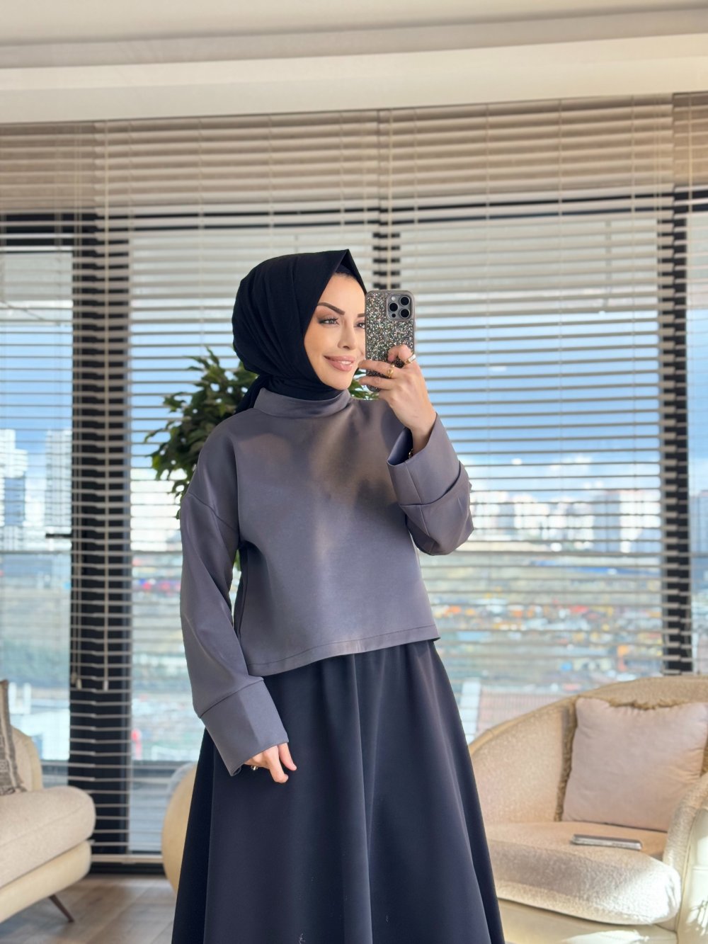 24381-1 Kalın Manşetli Bluz Antrasit