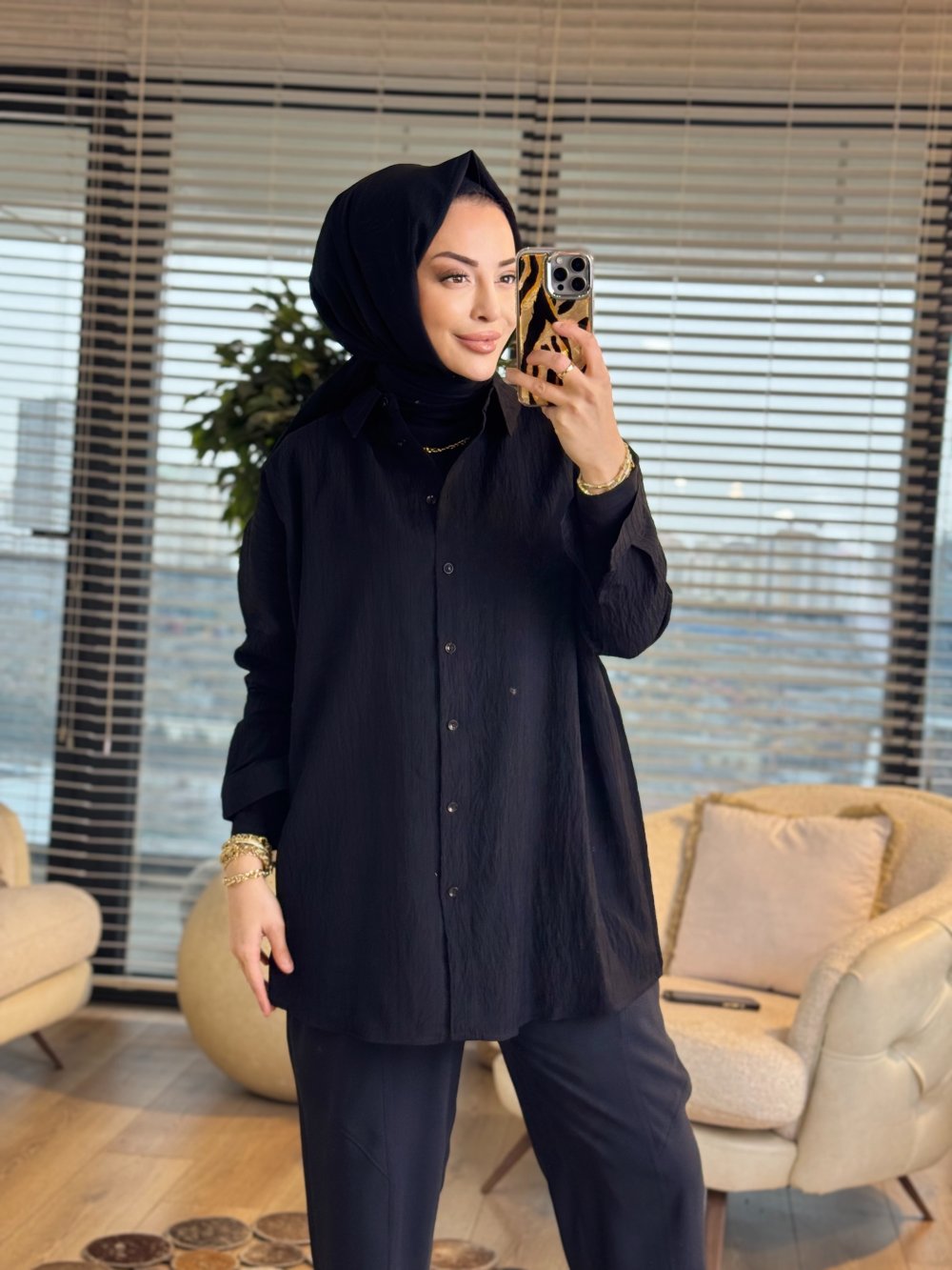 2490 Kendinden Desenli Gömlek Siyah