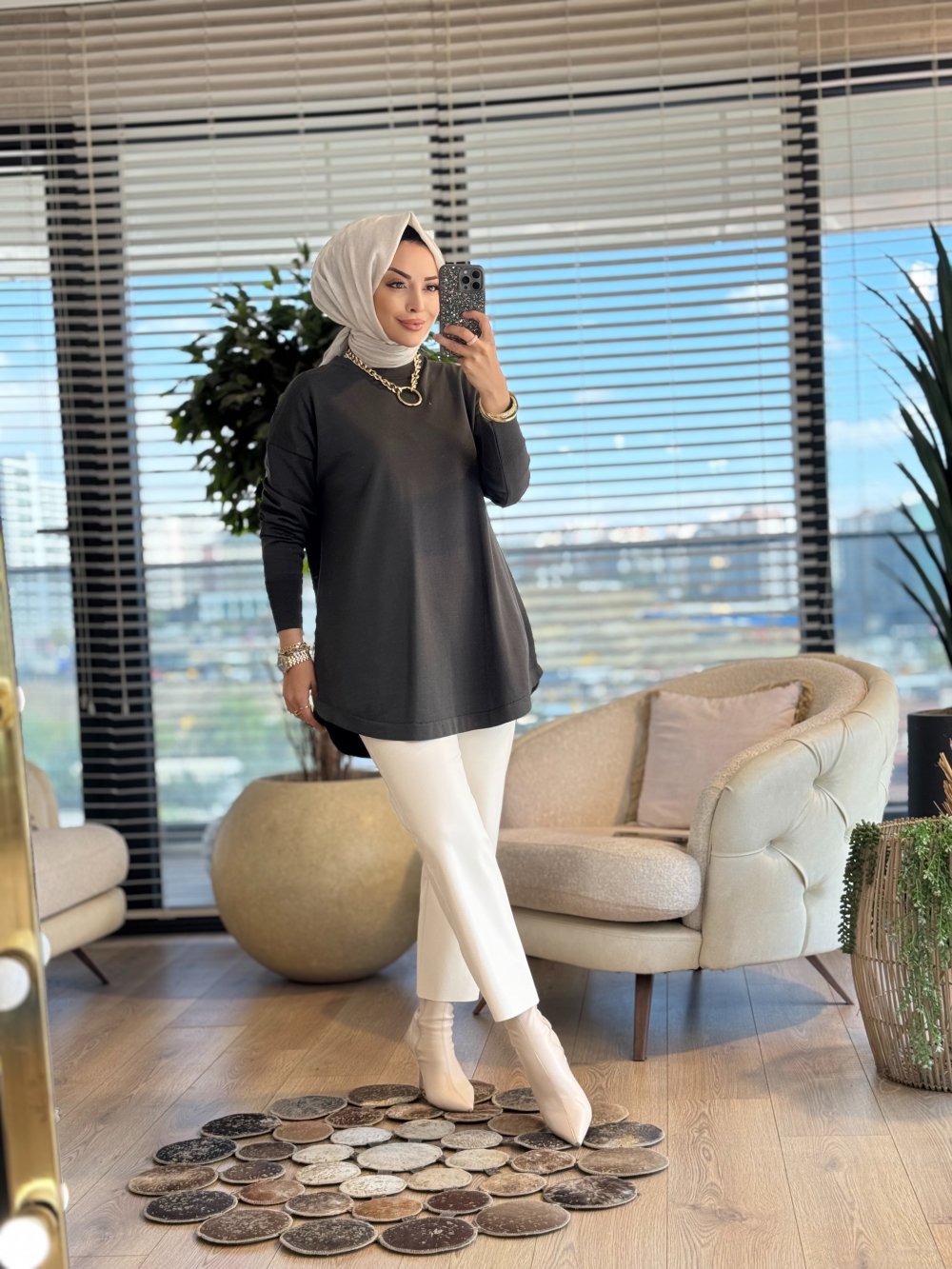 25004 Eteği Oval Sıfır Yaka Triko Tunik Siyah