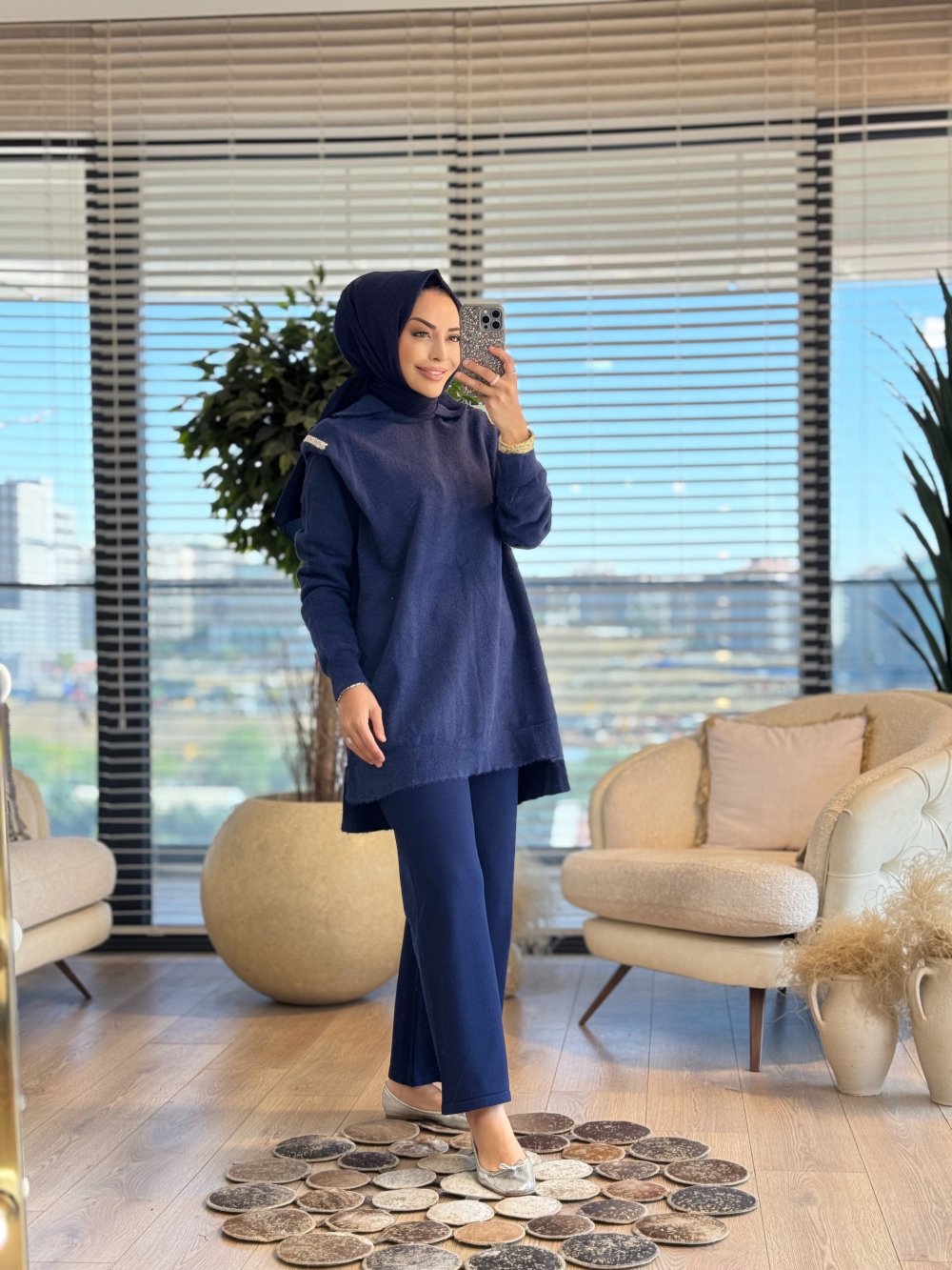 25036 Angora Omuzları Taşlı Tunik Lacivert