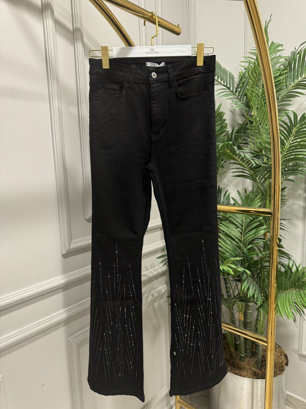 25077 Kot İspanyol Paça Taşlı Pantolon Siyah
