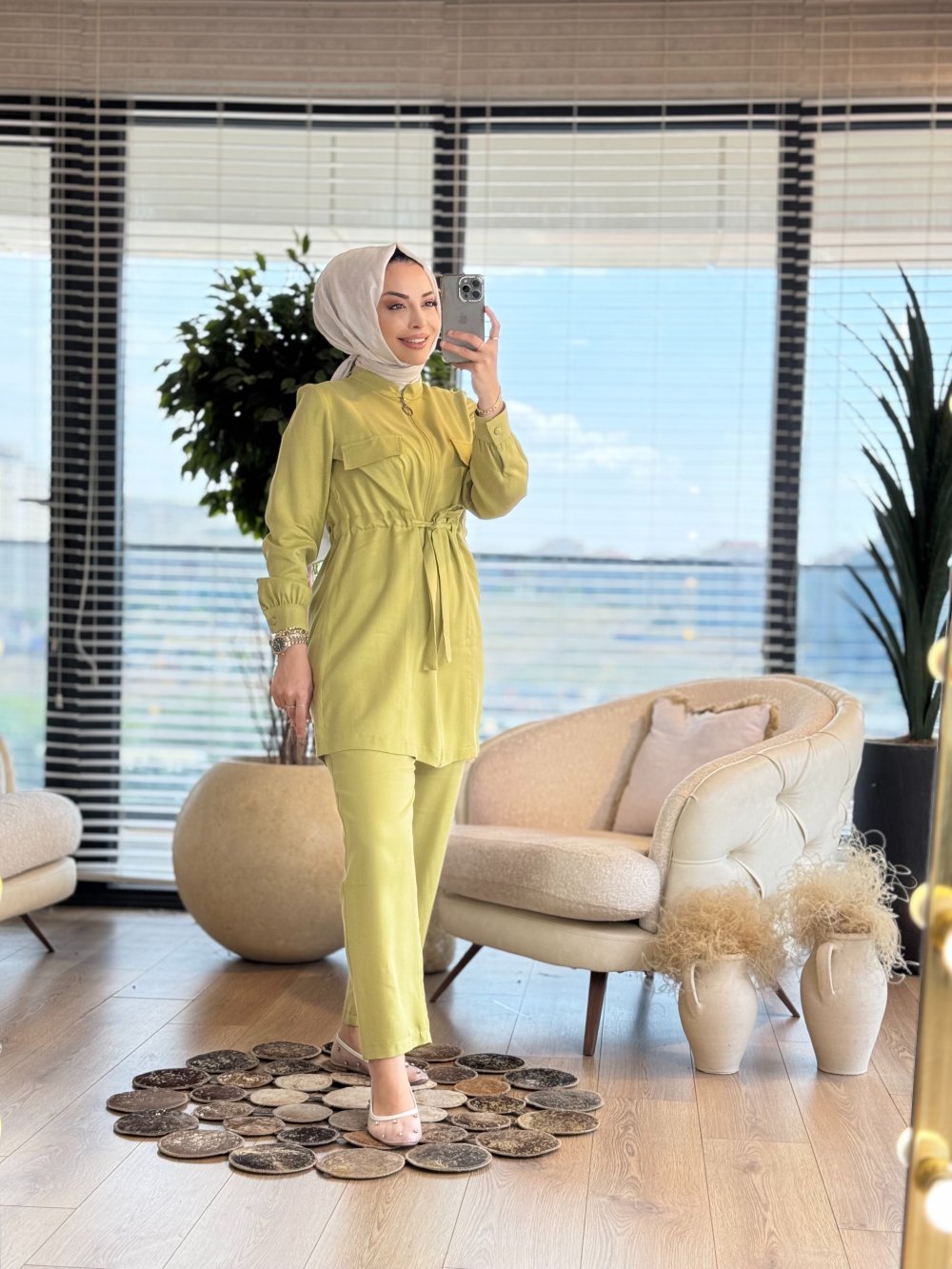 2547 Tencel Kuşaklı Takım Fıstık Yeşili