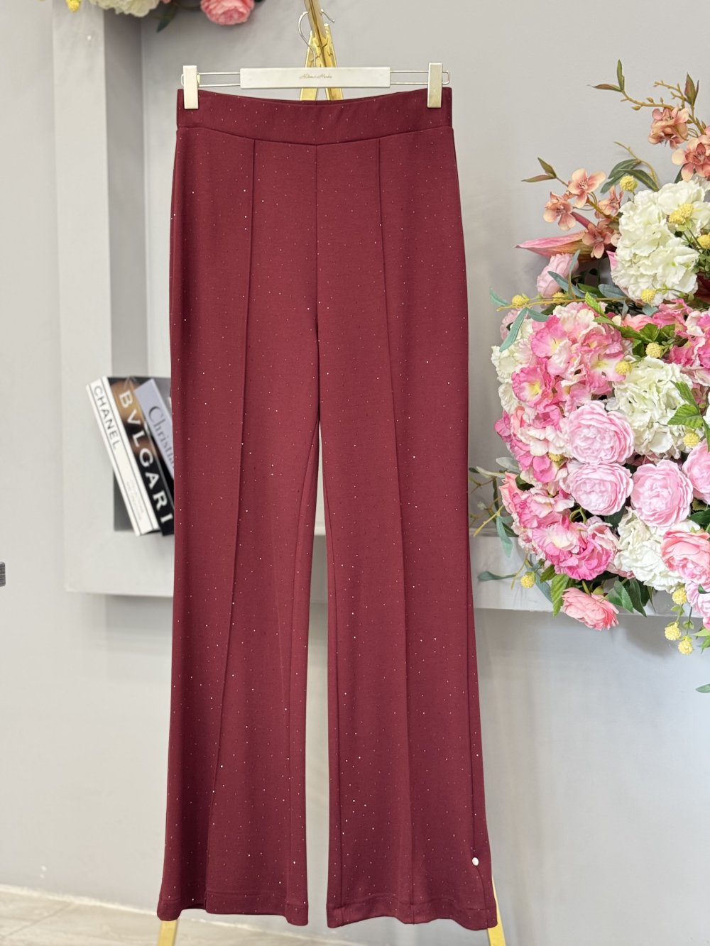25547 Önü Taş Baskılı İspanyol Paça Pantolon Bordo