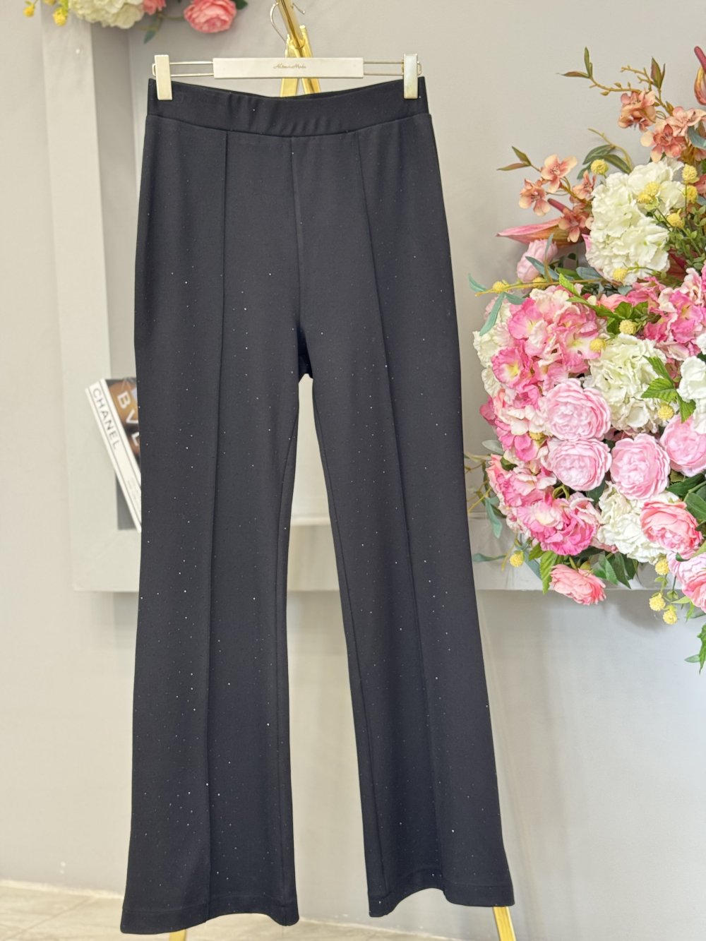 25547 Önü Taş Baskılı İspanyol Paça Pantolon Siyah