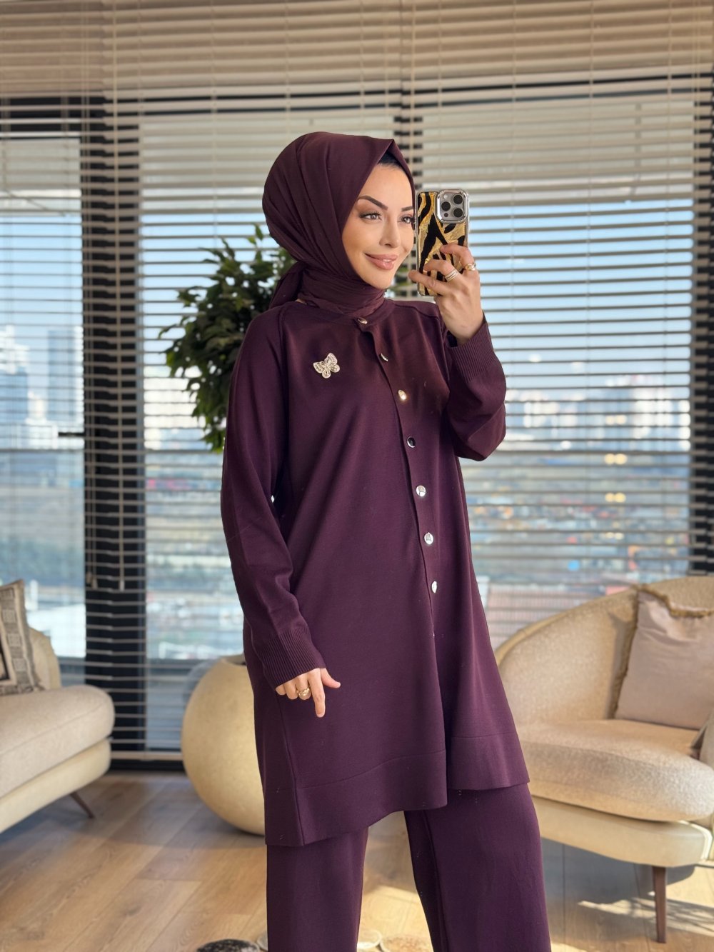 2560 Hırkalı Triko Takım Mürdüm