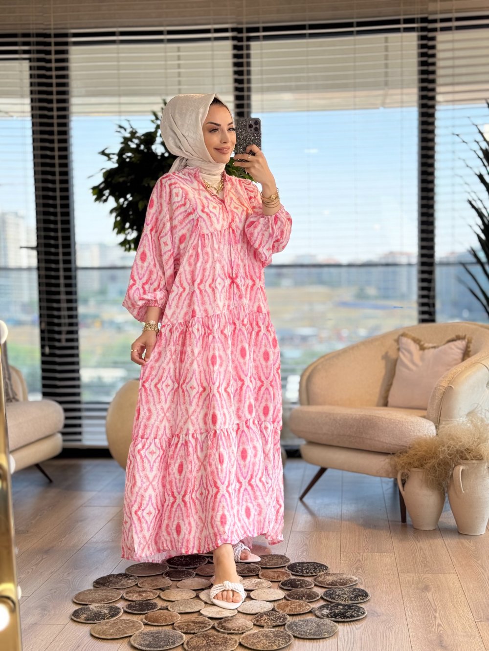 25EL500-1 Batık Karışık Çizgili Elbise Mercan