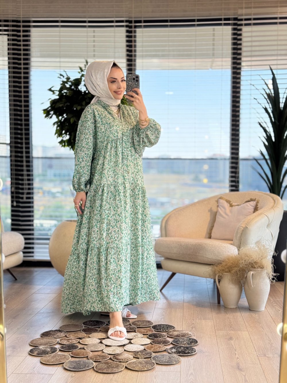 25EL556 Çıtır Çiçekli Elbise Yeşil