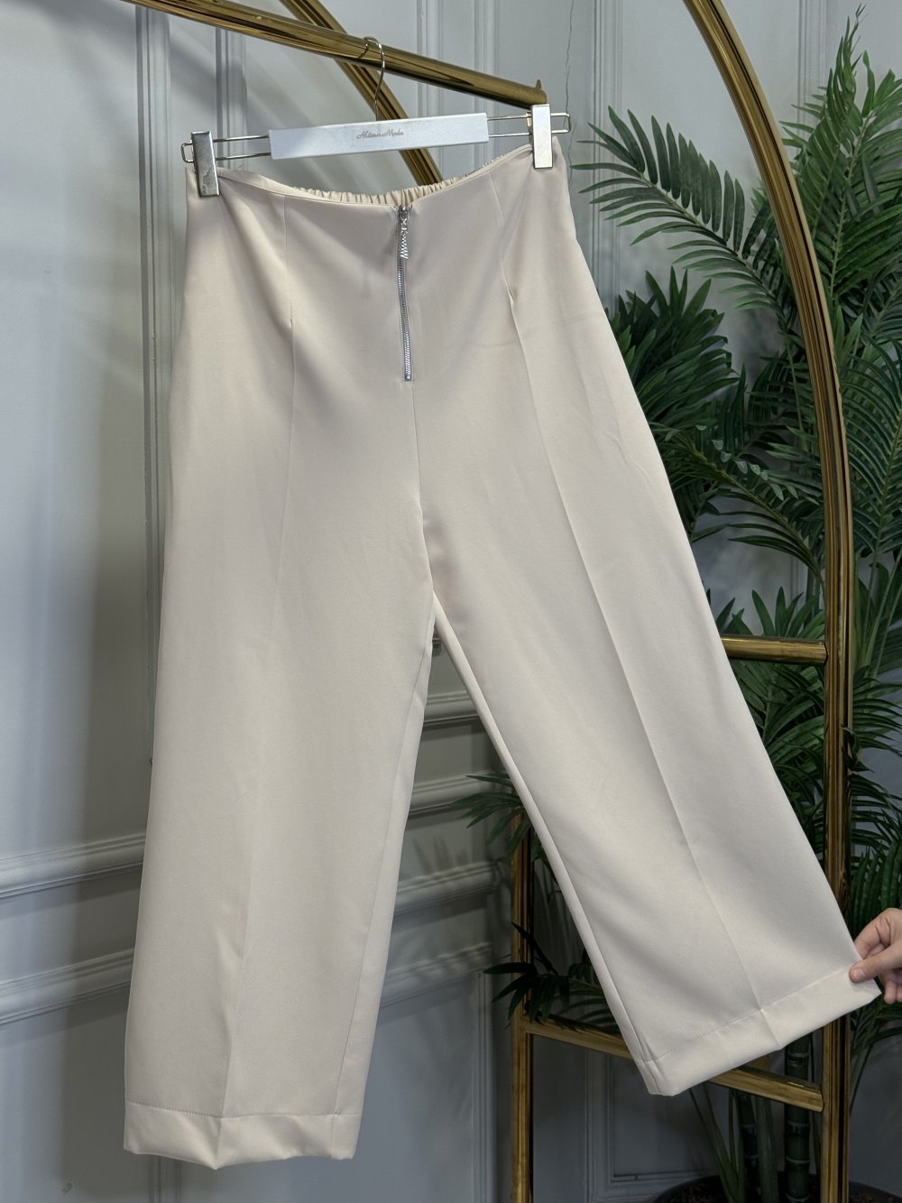 26086 Ön Fermuarlı Bol Paça Pantolon Bej