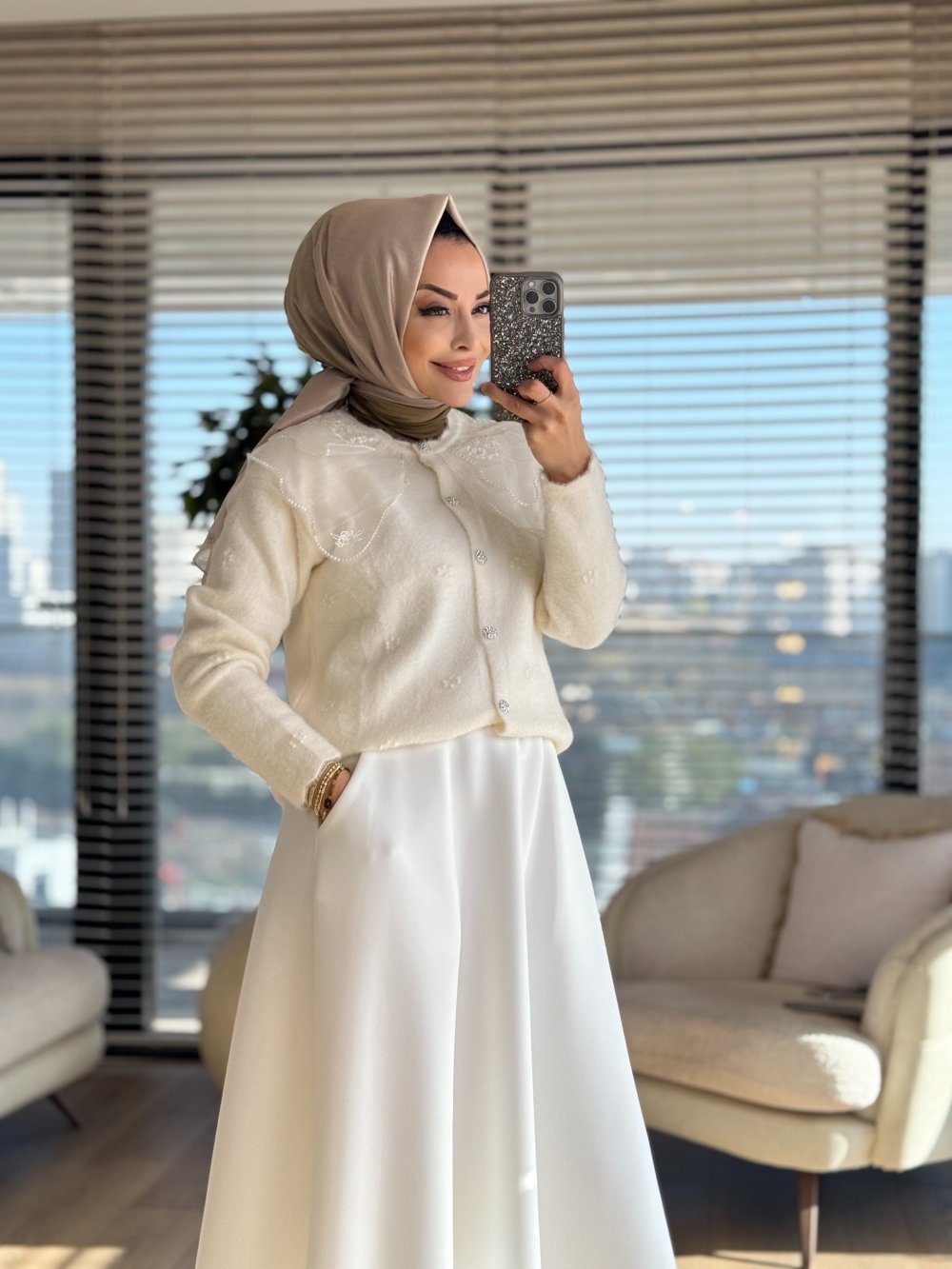 2624 Bebe Dantel Yaka Angora Kısa Hırka Ekru