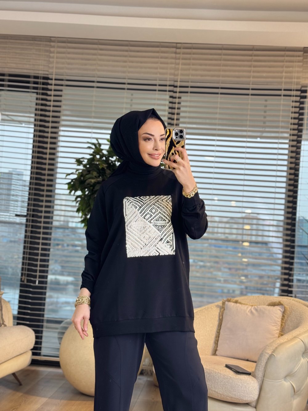 2683 Baskı Ve Nakış Detaylı SweatShirt Siyah