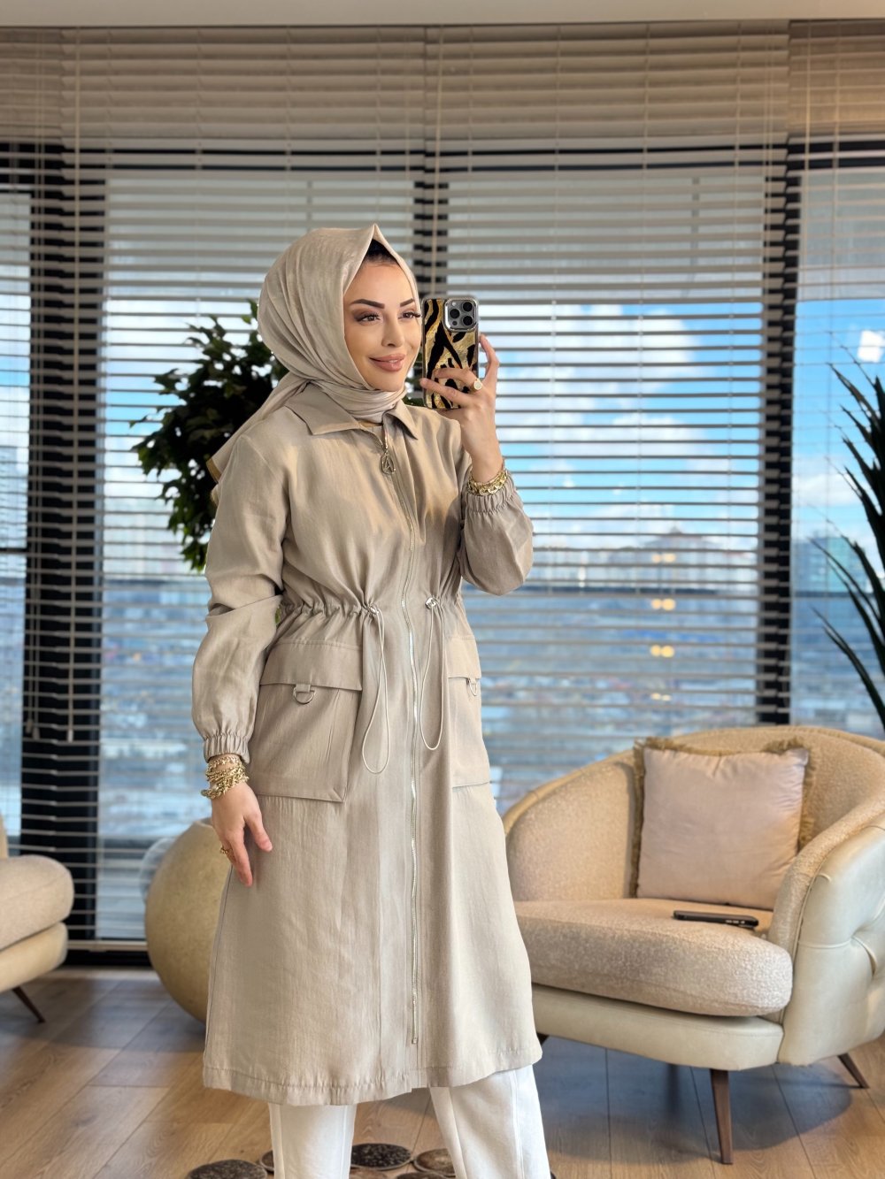 26YT501 Beli Büzgülü Fermuarlı Kap Taş