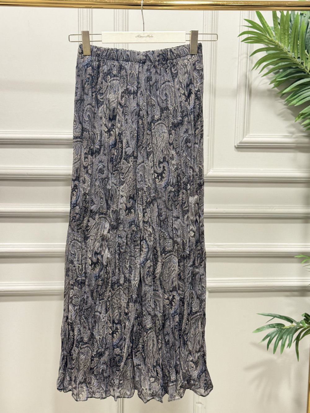 27032 Şifon Şal Desenli Kırışık Etek Siyah