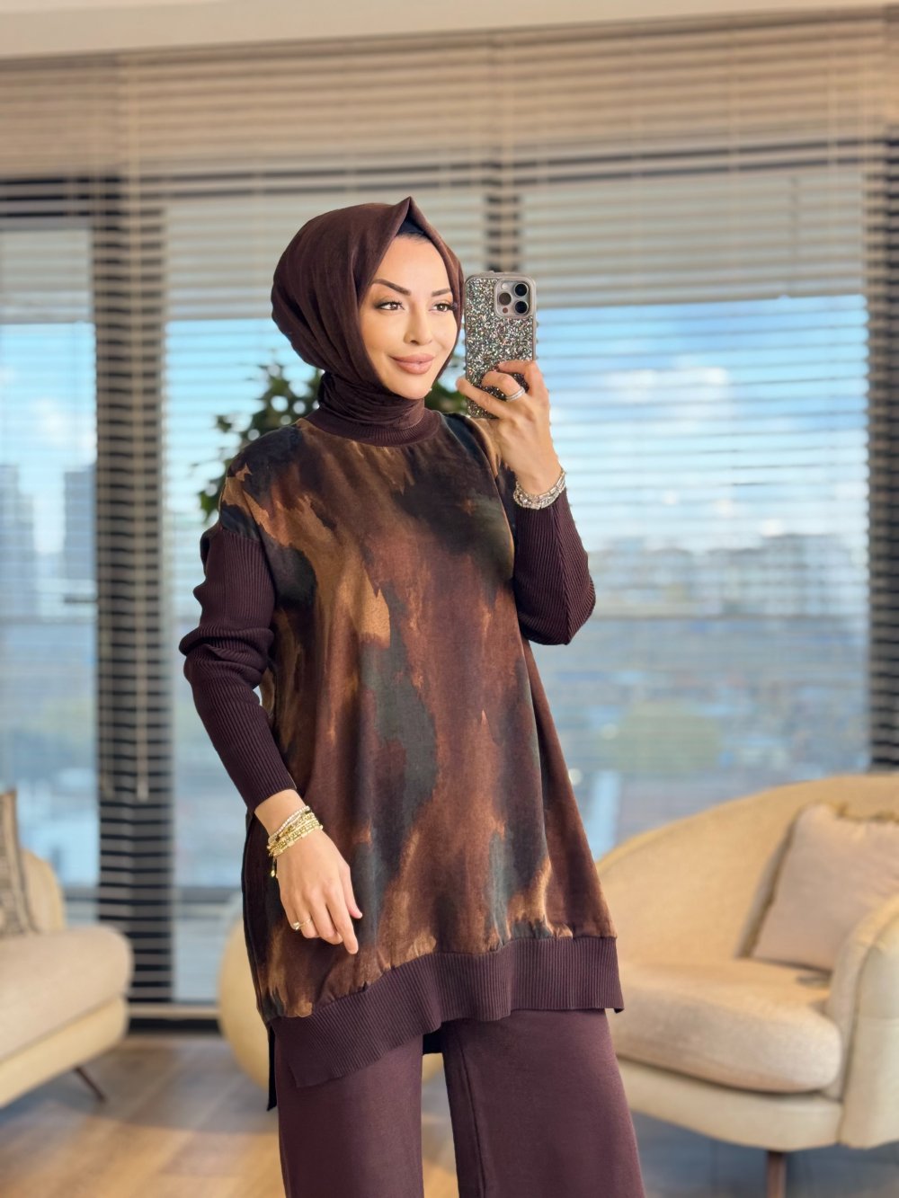 281 Kupra Desenli Tunik Kahve