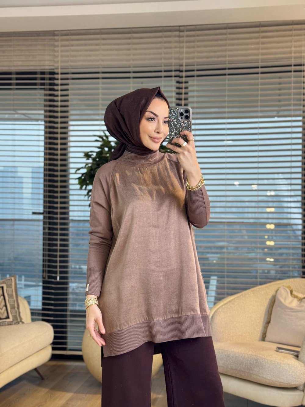 286 Düz Kupra Yandan Fermuarlı Tunik Vizon
