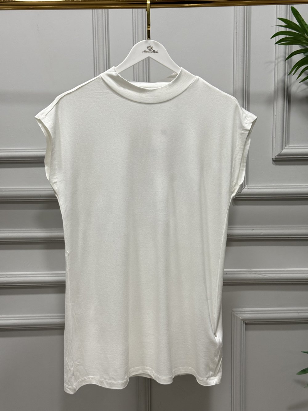 2948 Yüksek Yaka Kolsuz İçlik Ekru