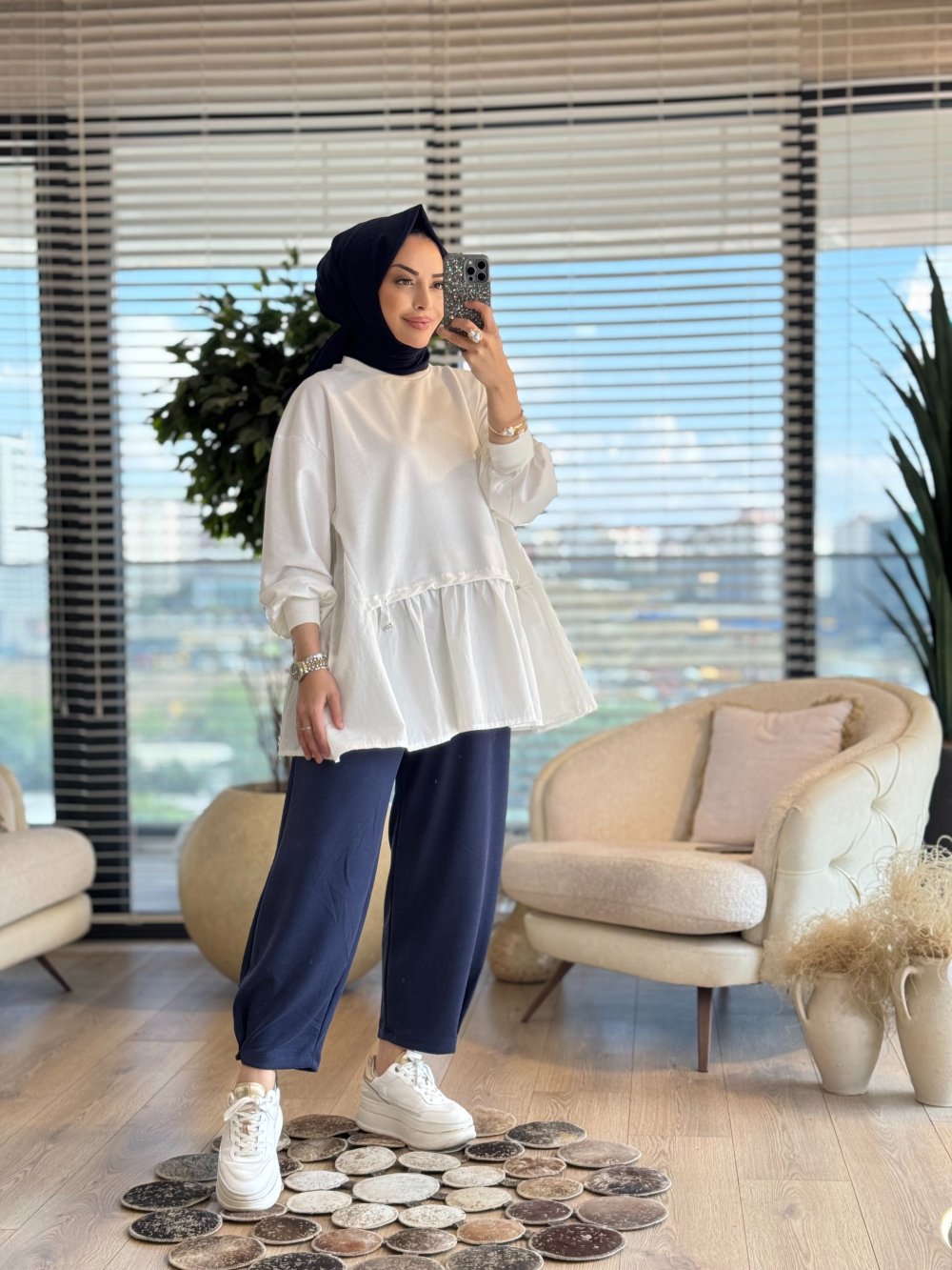3091 Büzgü Detaylı Garnili Tunik Ekru