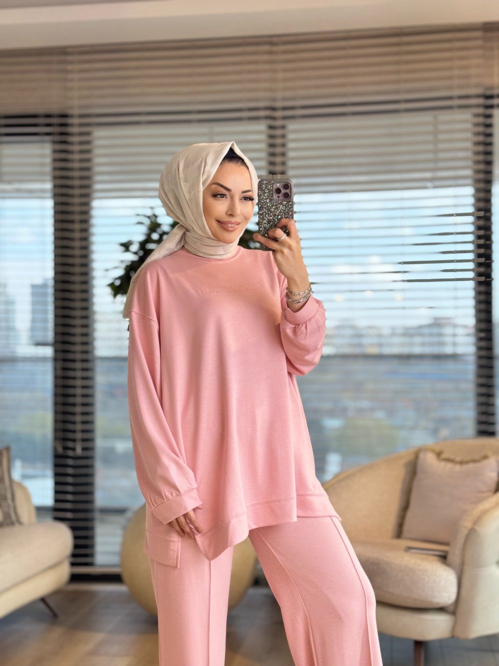 3149 Önü Baskı Detaylı Rahat Takım Somon