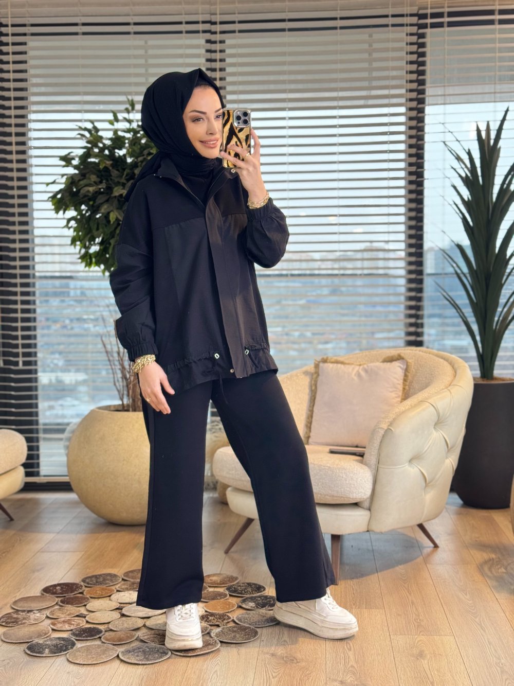 3287 Garni Detaylı Bağcıklı Takım Siyah