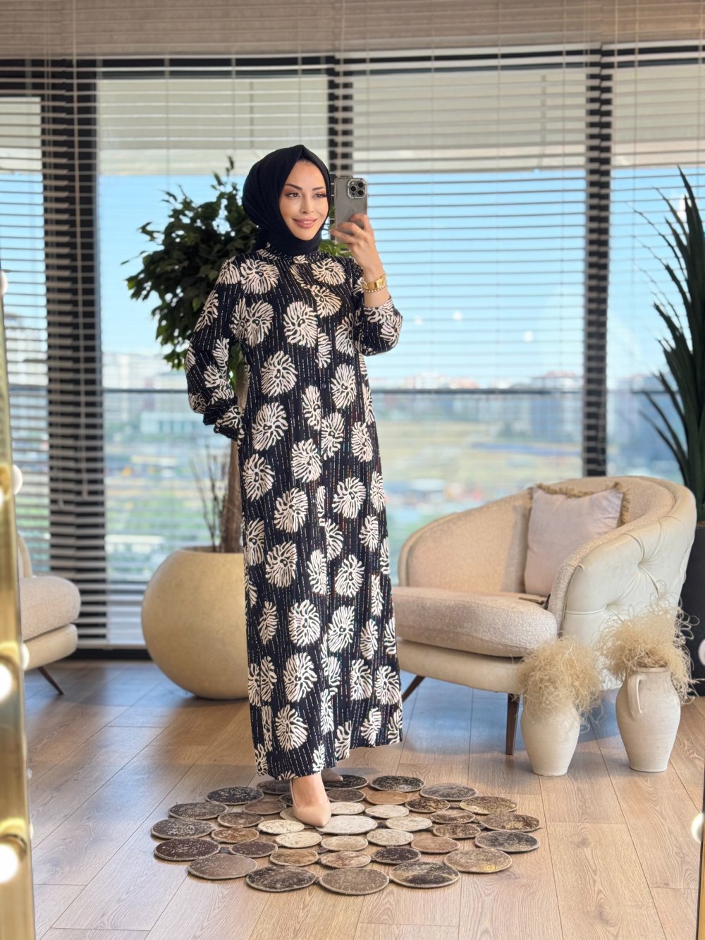 3486Y25 Dubai Viskon Elbise Siyah