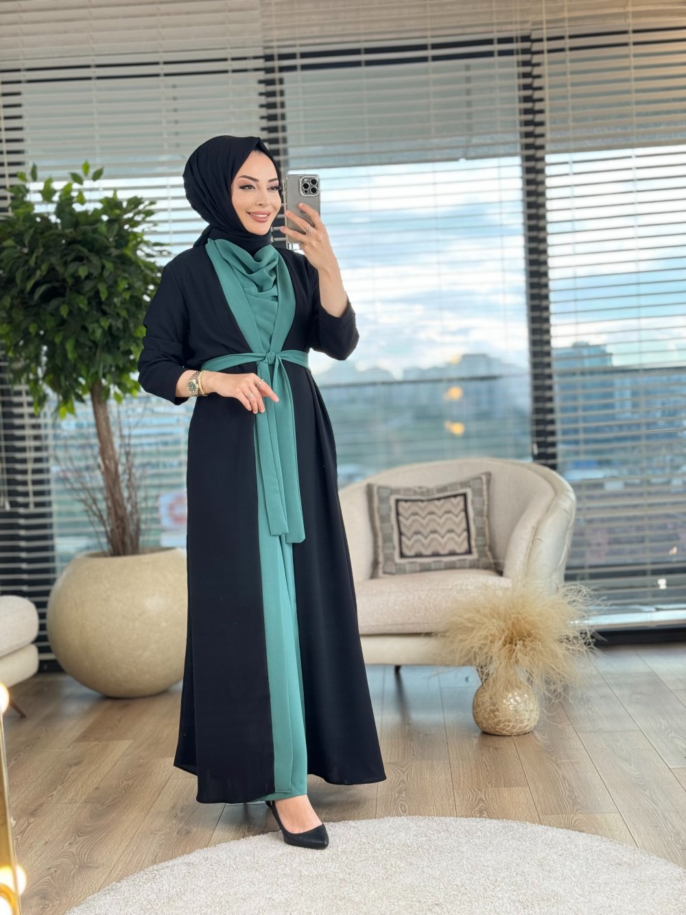 3902 İç Tulum Üst Abaya 2li Takım Siyah Çağla