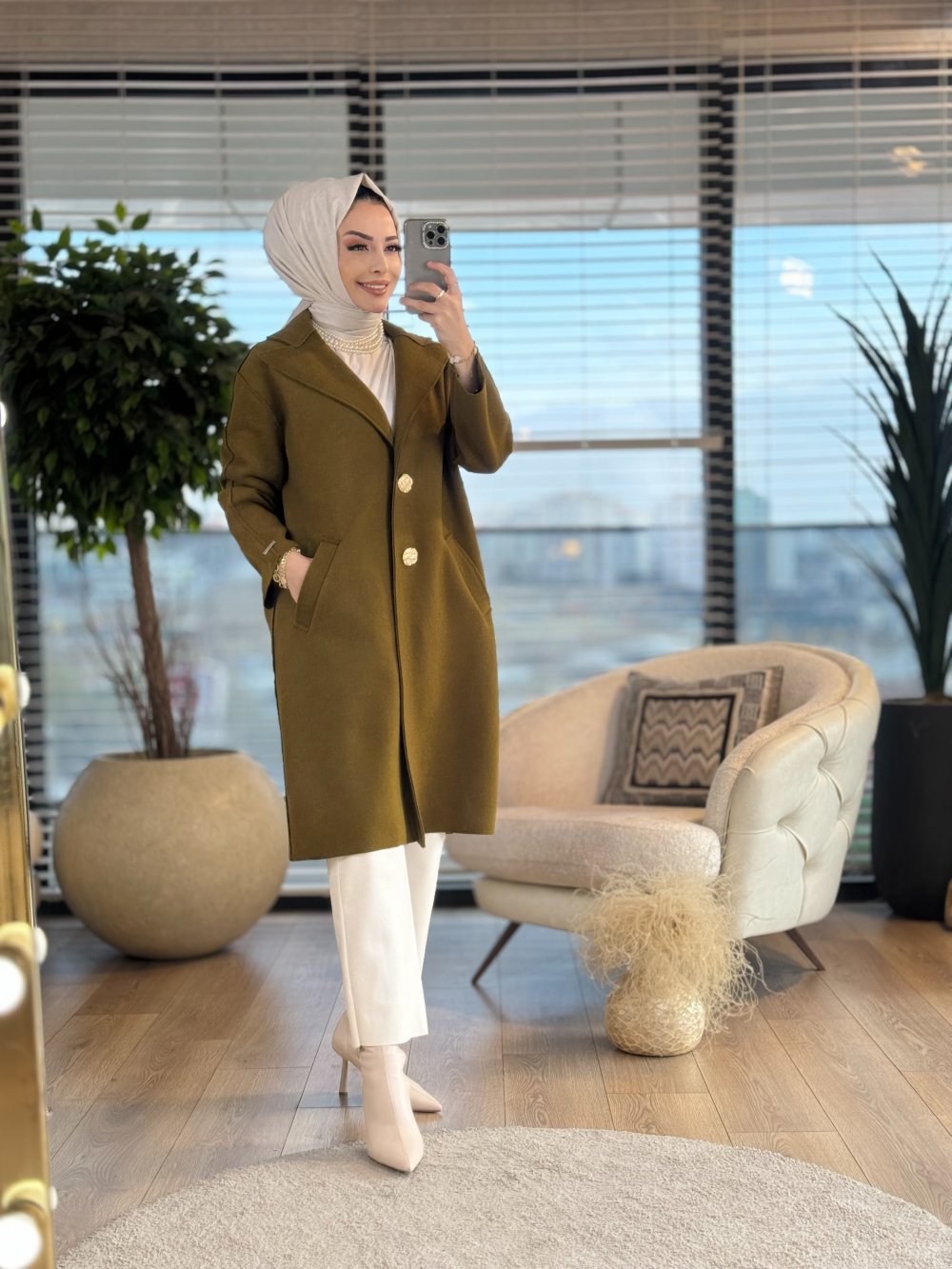 4147 Diana Kaşmir Kap Yağ Yeşili