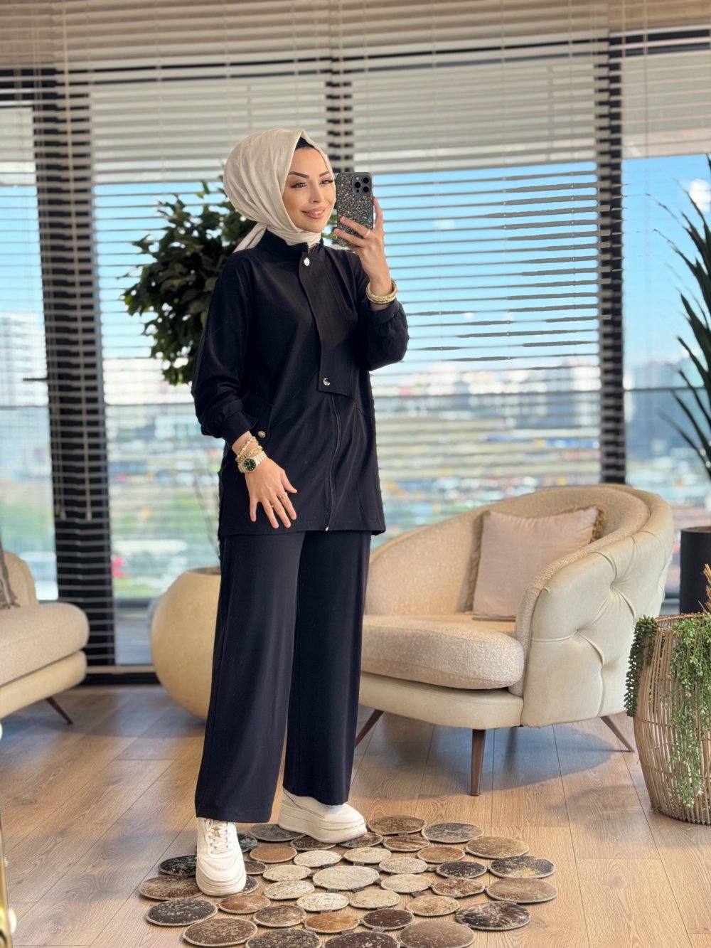 4420 Tencel Patı Çıtçıt Ve Cep Detaylı Takım Bej