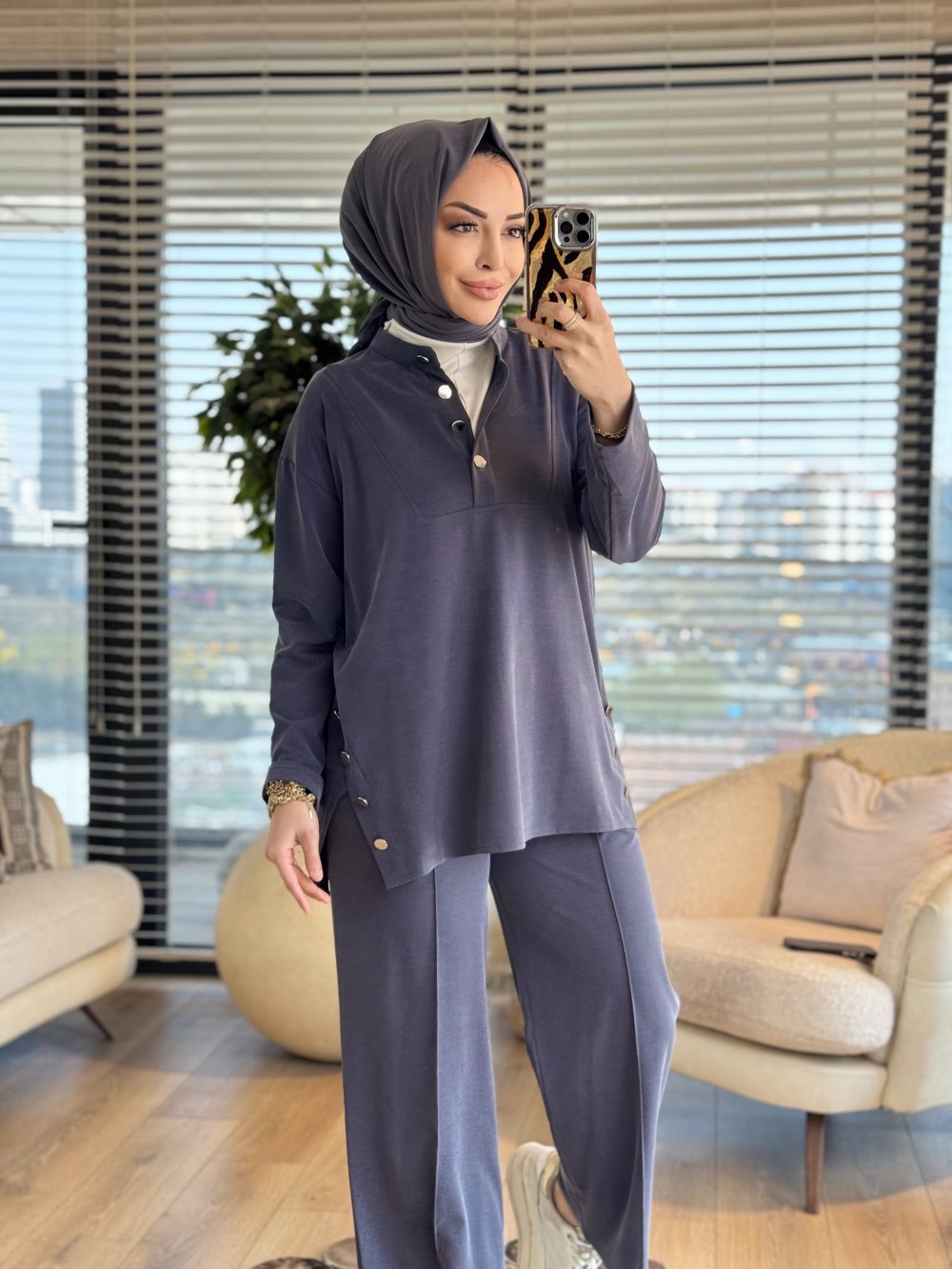 4437 Yanları Ve Patı Düğmeli Takım Lacivert