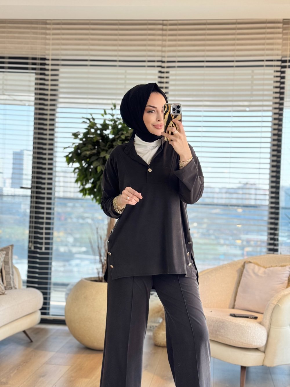 4437 Yanları Ve Patı Düğmeli Takım Siyah