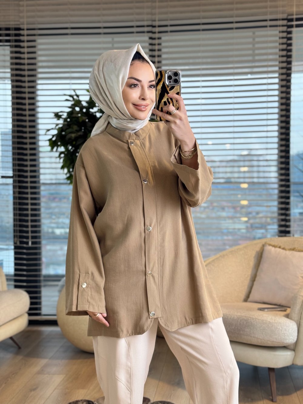 4445 Önü Fermuarlı Yakasız Kap Bej